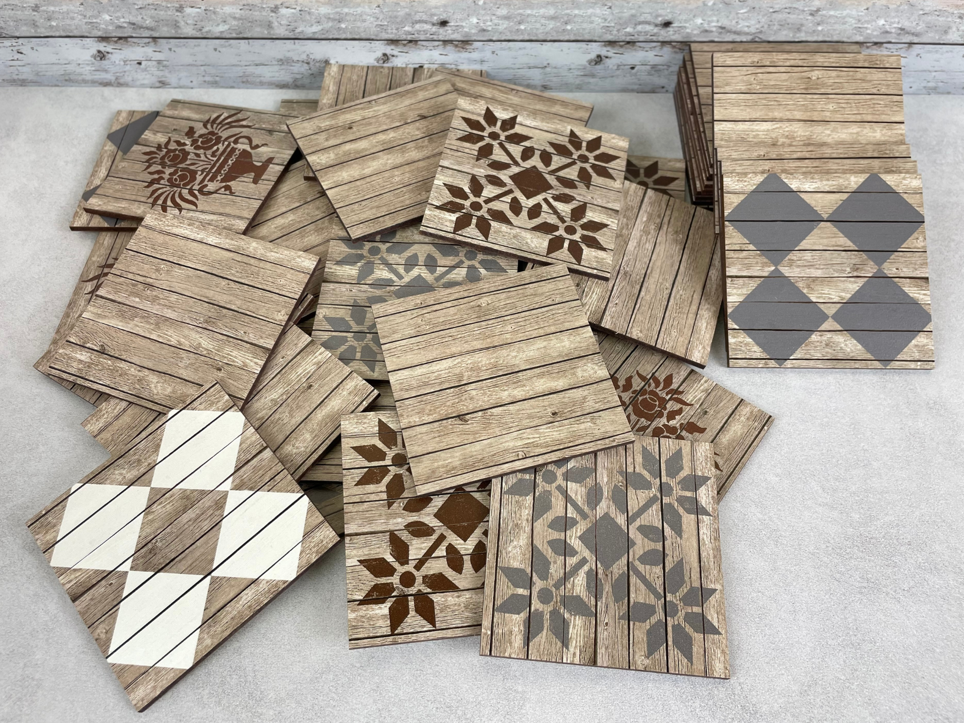 Miniaturparkettboden für Ihr Puppenhaus! Sie können schöne Ornamente formen und auch verschiedene Stile verwenden, um große Fliesenplatten auf dem Boden Ihres Puppenhauses herzustellen. Die Fliesen sind für den Maßstab 1:12 oder 1:6 ausgelegt.