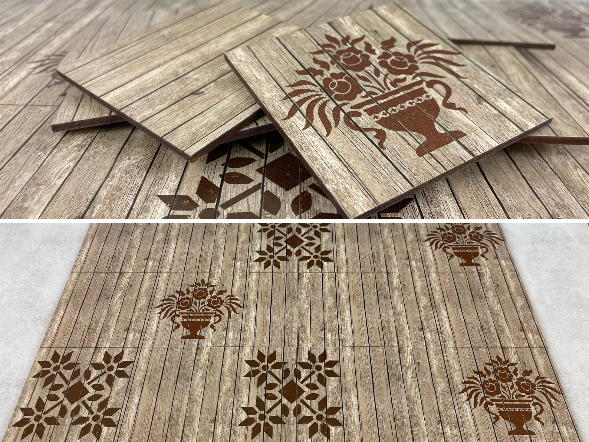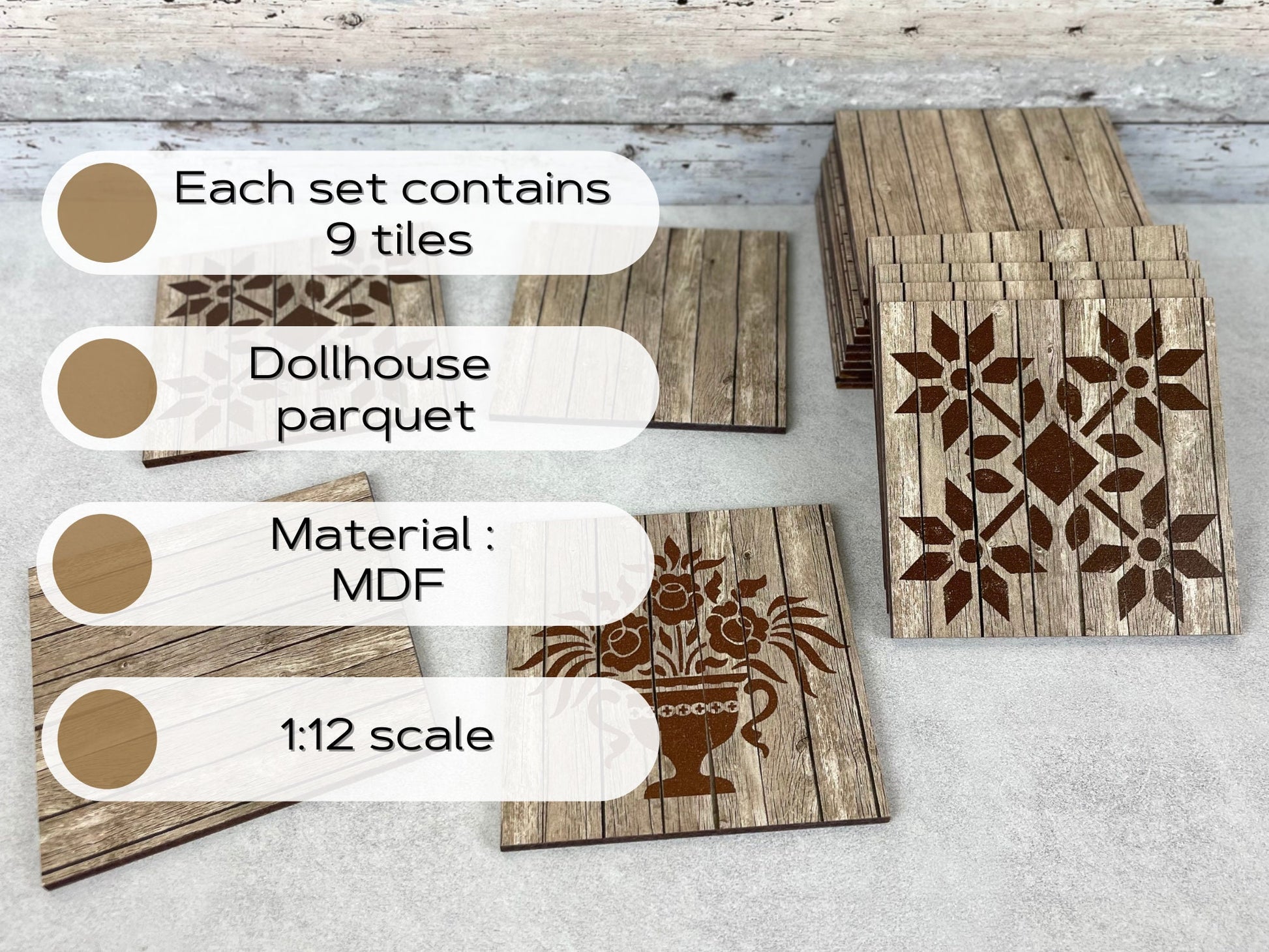 Miniaturparkettboden für Ihr Puppenhaus! Sie können schöne Ornamente formen und auch verschiedene Stile verwenden, um große Fliesenplatten auf dem Boden Ihres Puppenhauses herzustellen. Die Fliesen sind für den Maßstab 1:12 oder 1:6 ausgelegt.