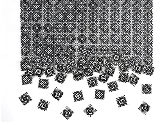 Ein Satz Miniaturfliesen. Sie bilden ein hübsches Ornament und Sie können auch mehrere Sätze verwenden, um eine große Fliesenplatte auf dem Boden oder an der Wand Ihres Puppenhauses herzustellen. Puppenhausfliesen sind für den Maßstab 1:12 oder 1:24 ausgelegt.